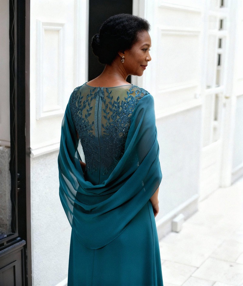 Elegant A-line Chiffon Mother of the Bride Dress with Appliques Lace, perfect for special occasions, crafted with premium materials for a sophisticated look.