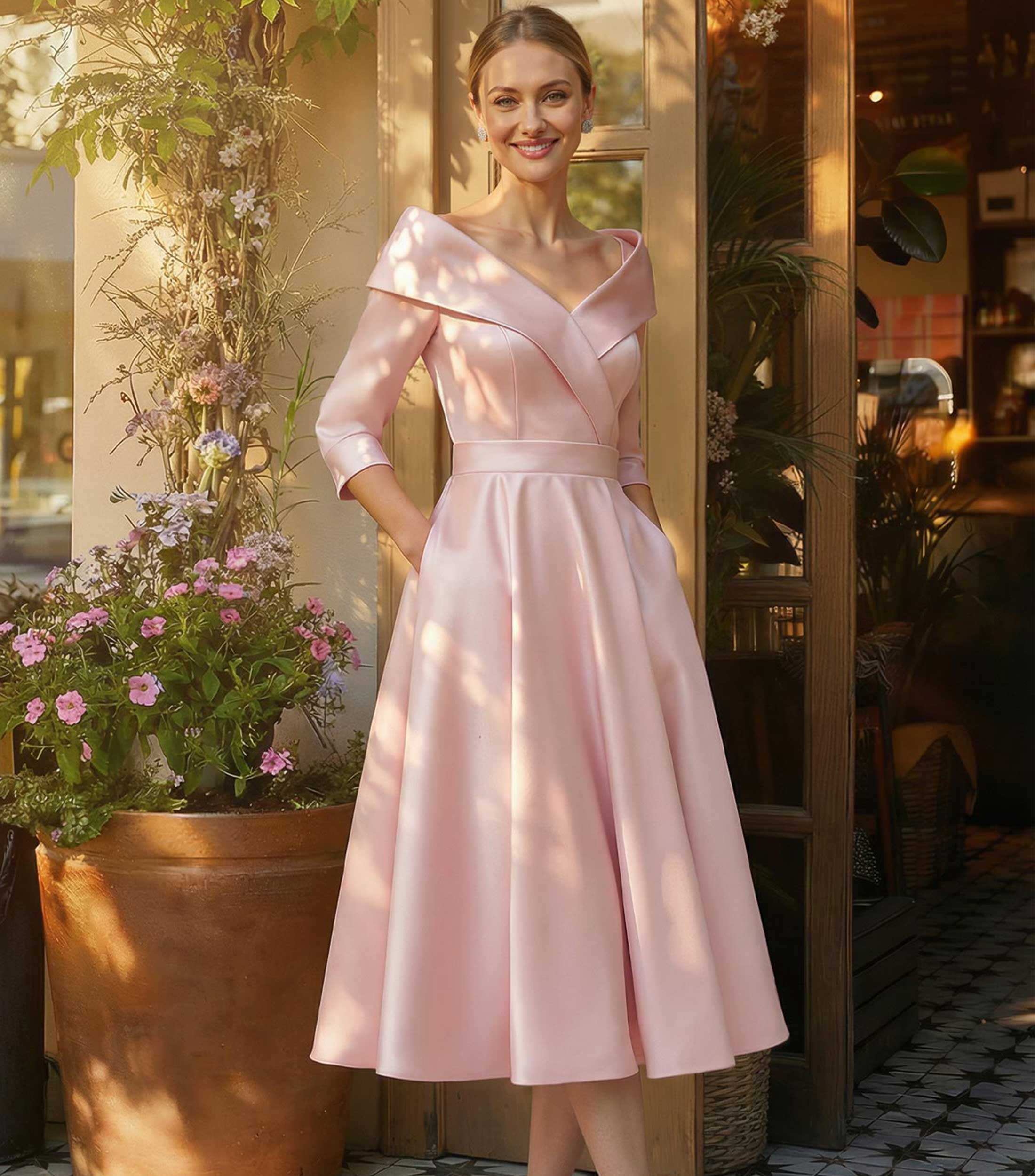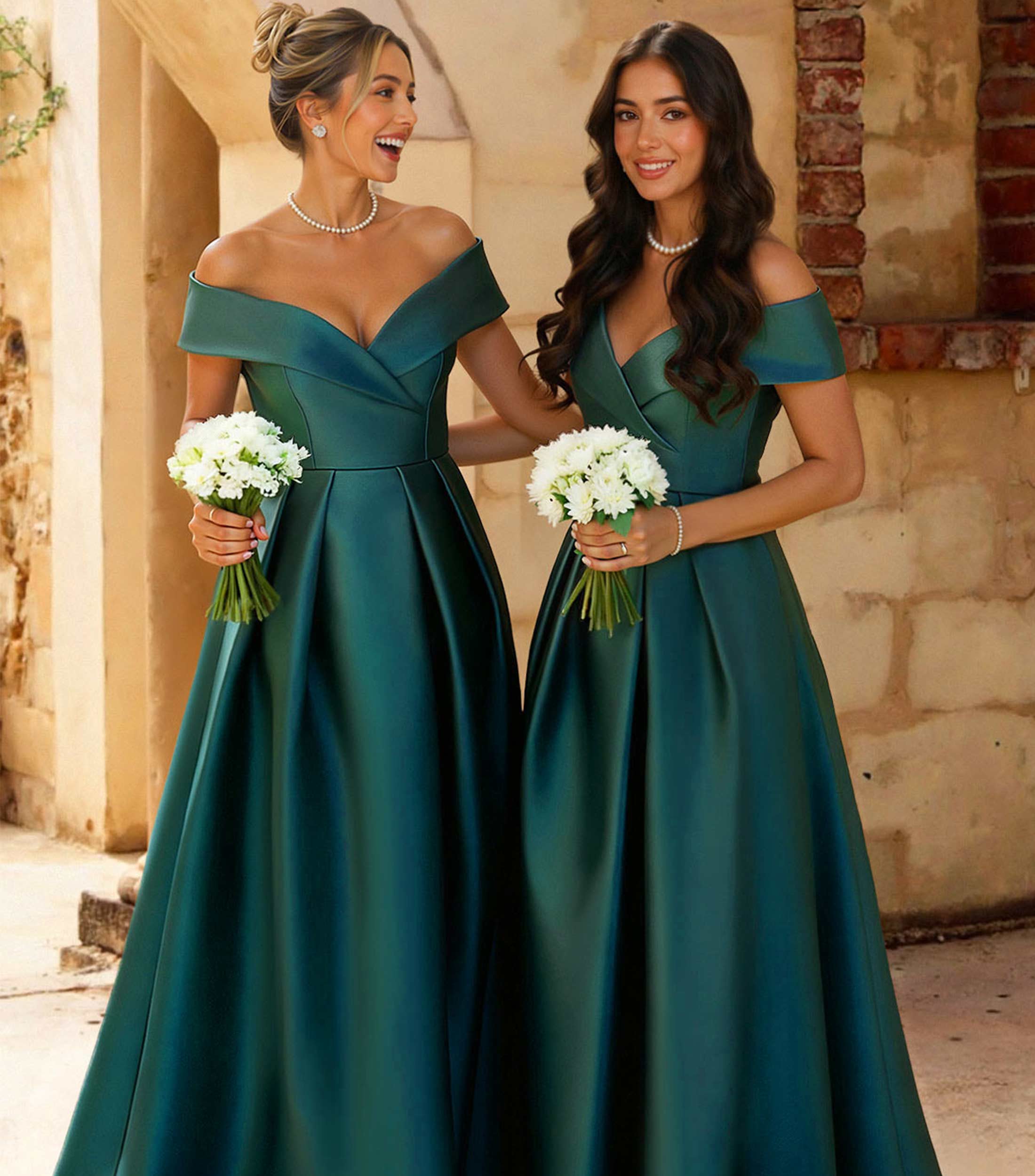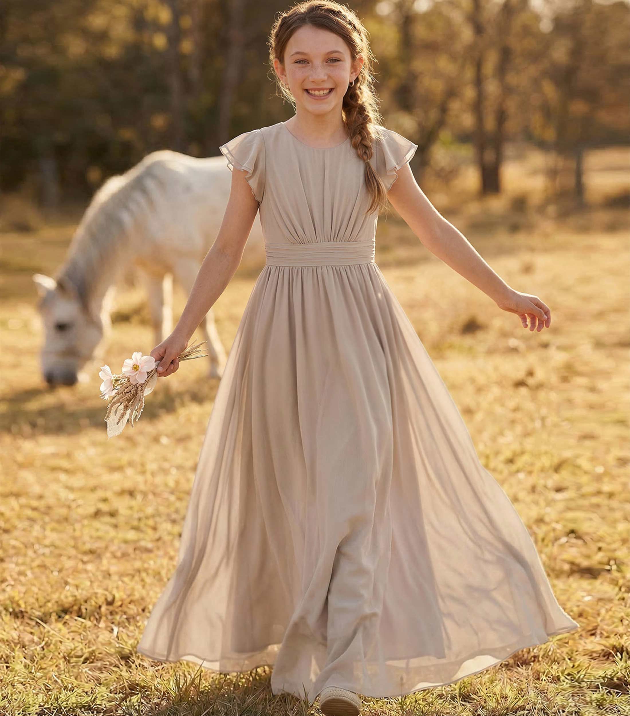 A-Line V-Neck Short Sleeves Floor-Length Chiffon Evening Dresses With Pleated Flower(s) #SED12233