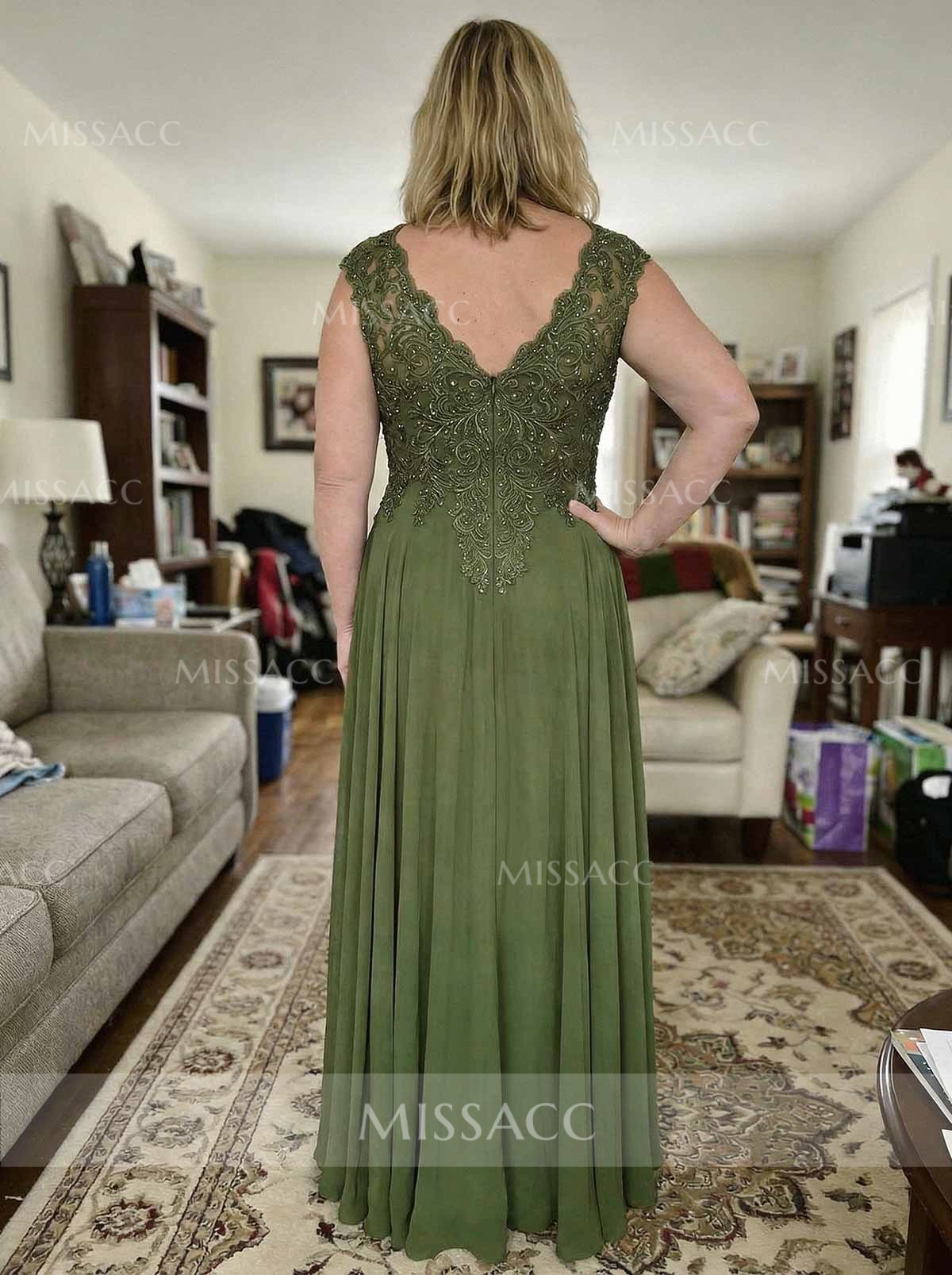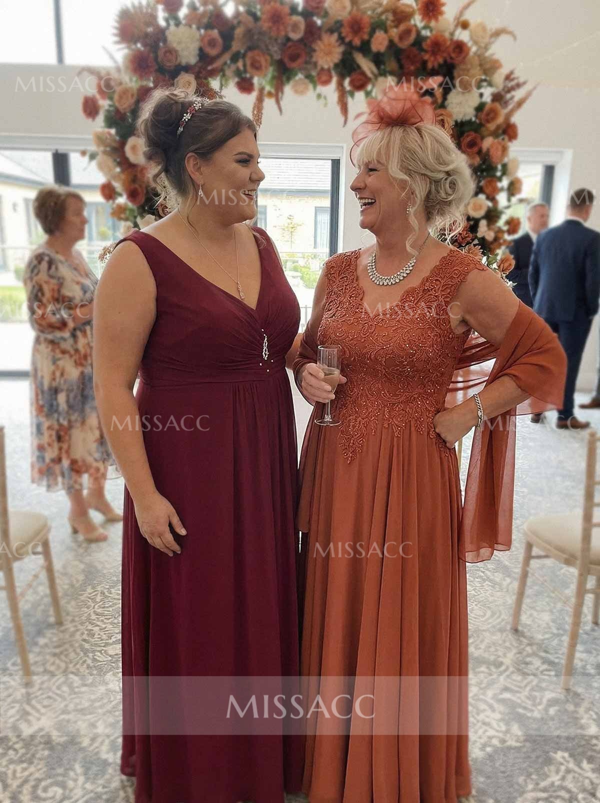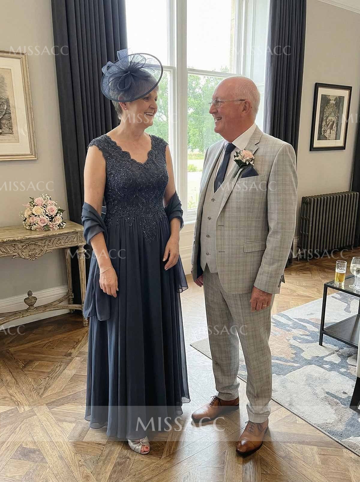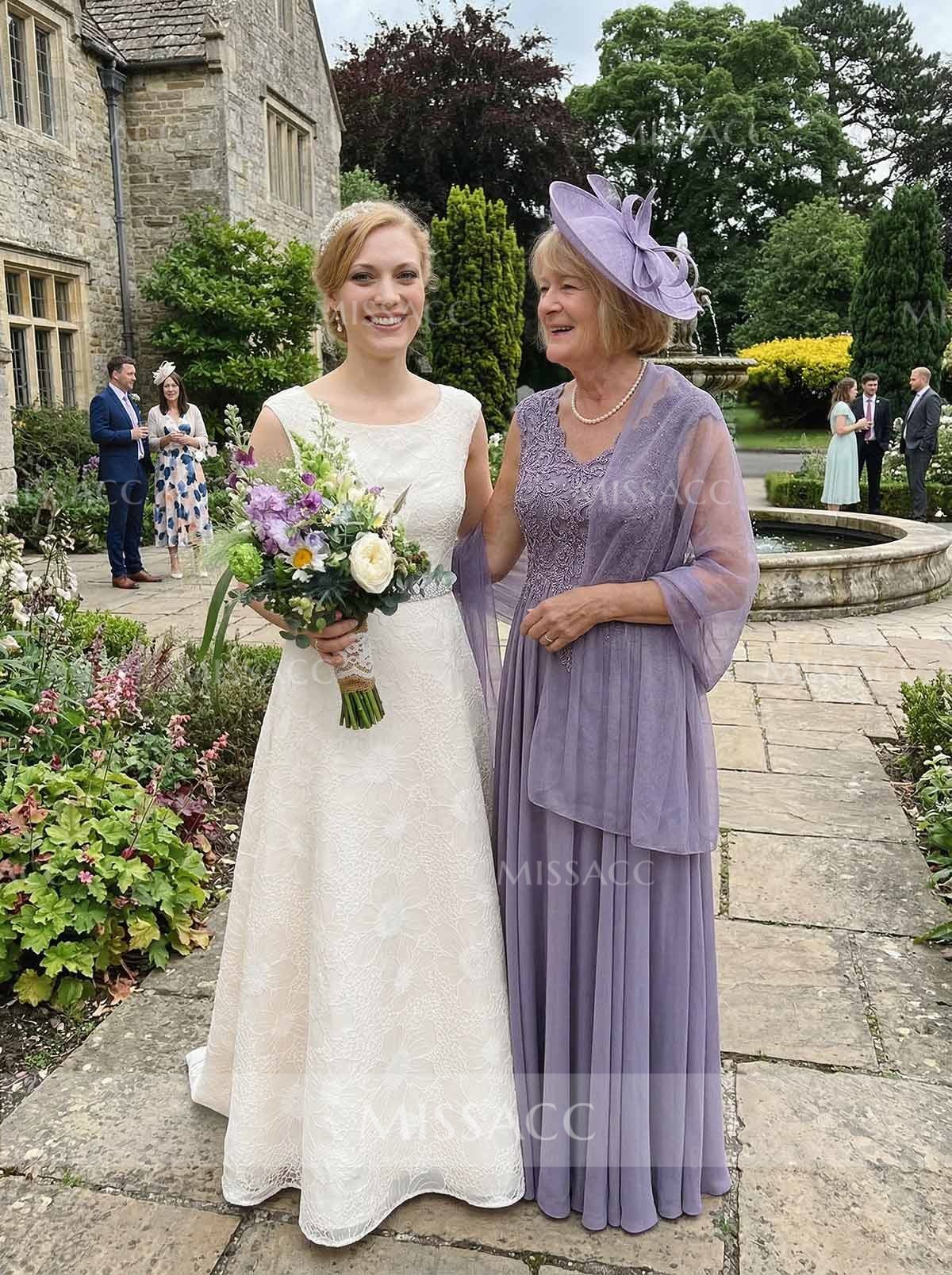 Discover our A-line V-neck sleeveless chiffon mother of the bride dress, featuring intricate lace detailing for a sophisticated and elegant look perfect for the special day.