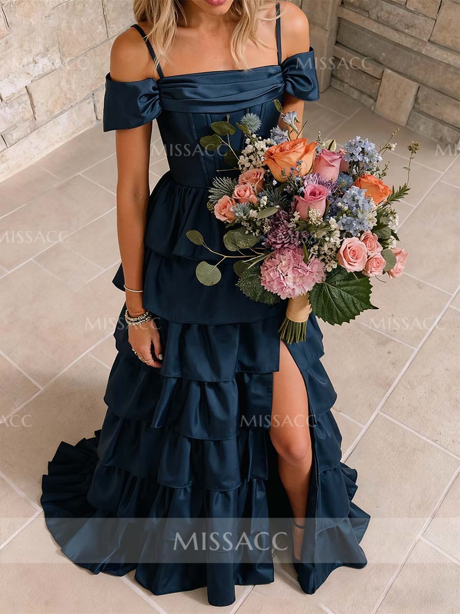 This royal blue gown slaps in low light! Wore it to a cocktail party with string lights, and the satin glowed so pretty. The tiered skirt moves smoothly when walking, and the slit is fun but not too much. It’s easy to style—paired with simple heels, it still felt fancy. I’ve worn it 3 times now, and it still looks new. Worth every penny!
