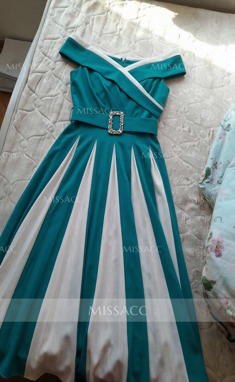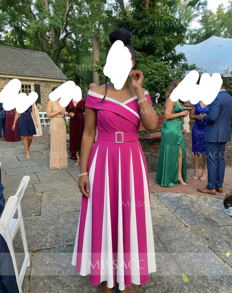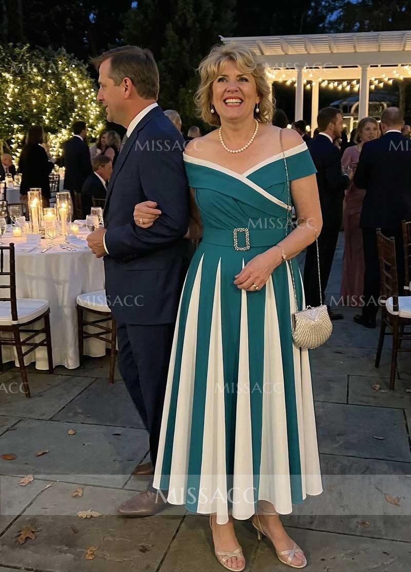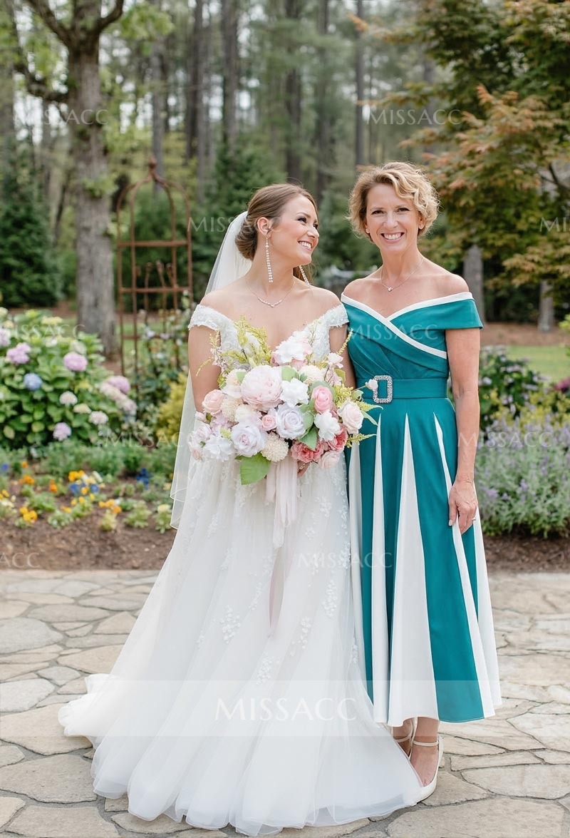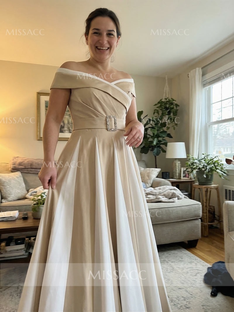 Elegant Off-The-Shoulder A-Line Elastic Satin Mother Of The Bride Dresses #SMBD12327