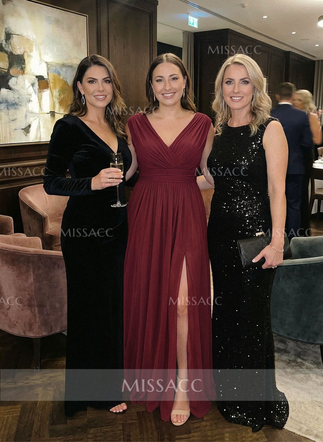 Introducing our Chiffon Evening Dress, featuring a sleek jumpsuit design with a flattering V-neck and floor-length elegance, perfect for a sophisticated night out.