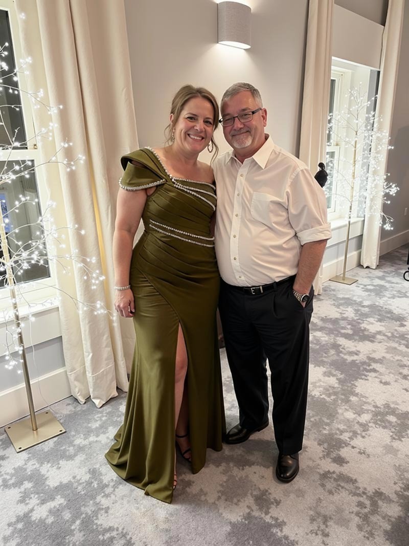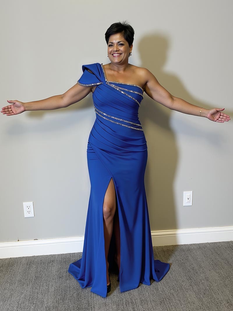 This dress is a beautiful choice for a wedding guest. The trumpet mermaid cut is very elegant, and the one-shoulder detail adds a modern touch. I felt very put-together wearing it.