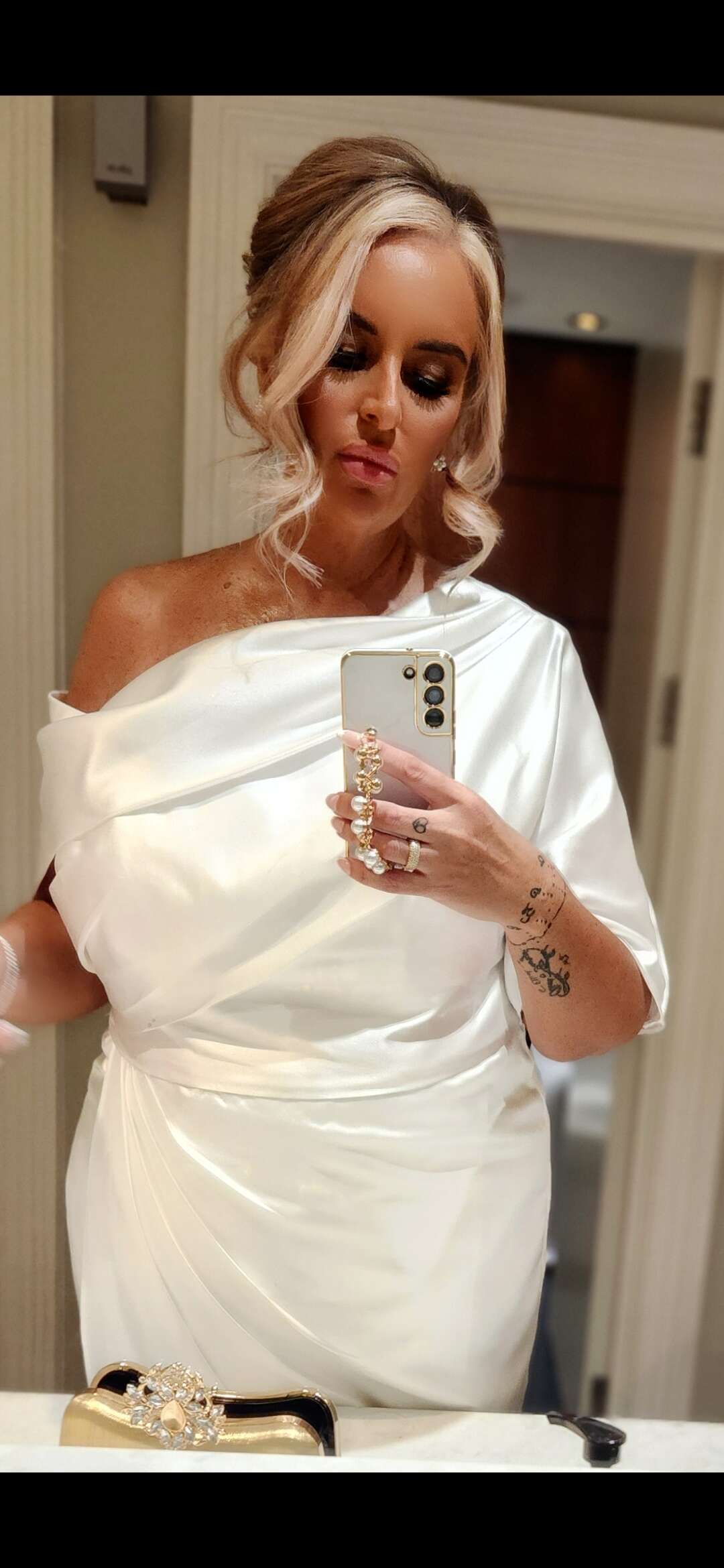 The dress arrived quickly and it's exactly what I was looking for. The satin material is smooth and the ruffle detail is a cute addition. I'm excited to wear it at the wedding.