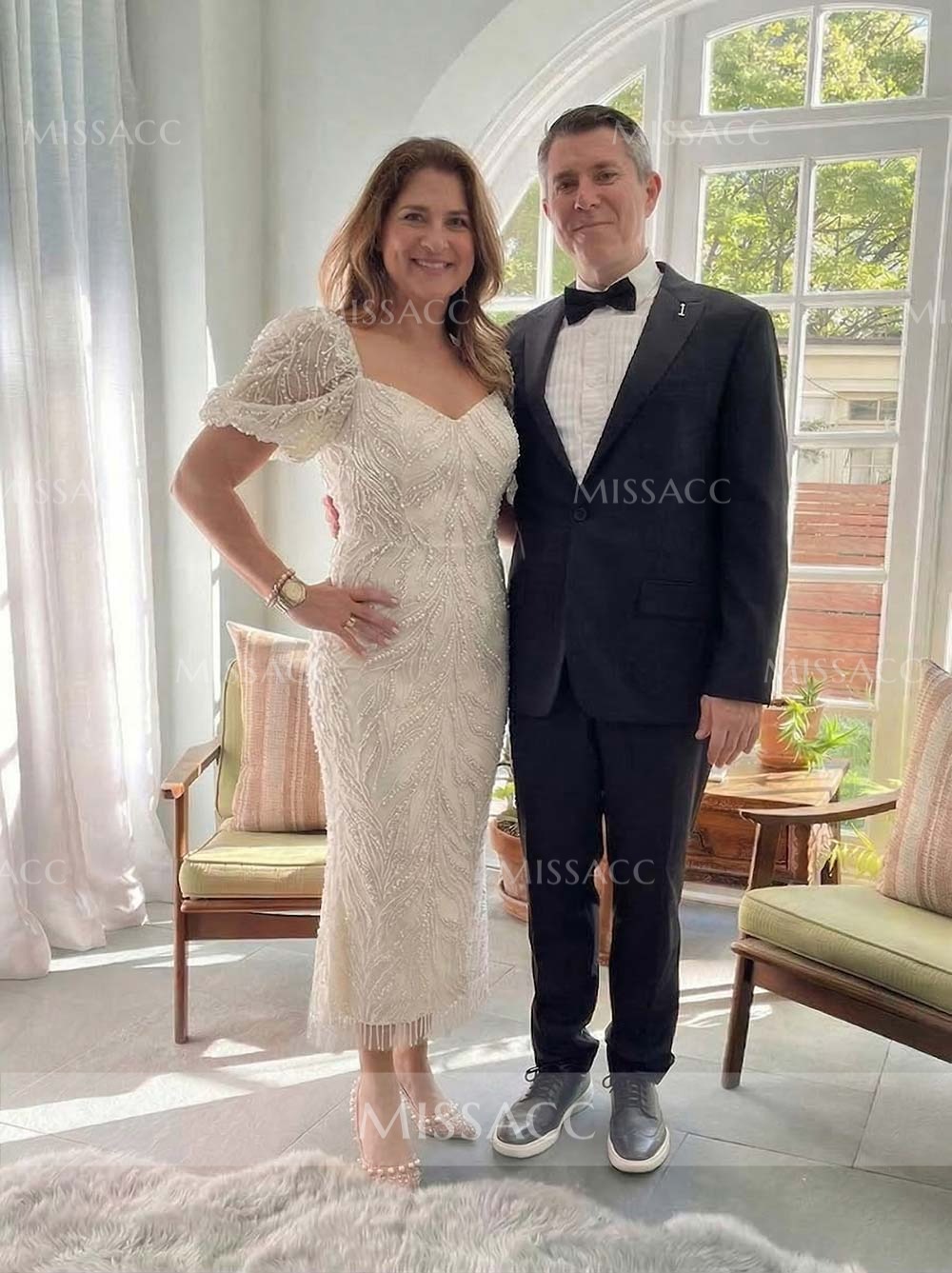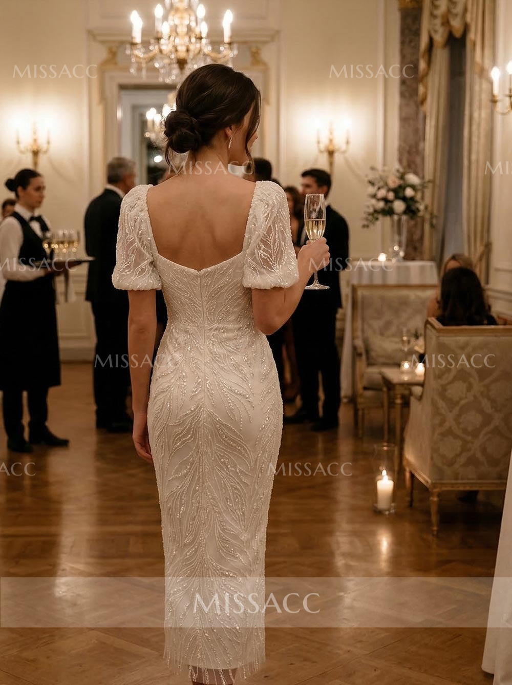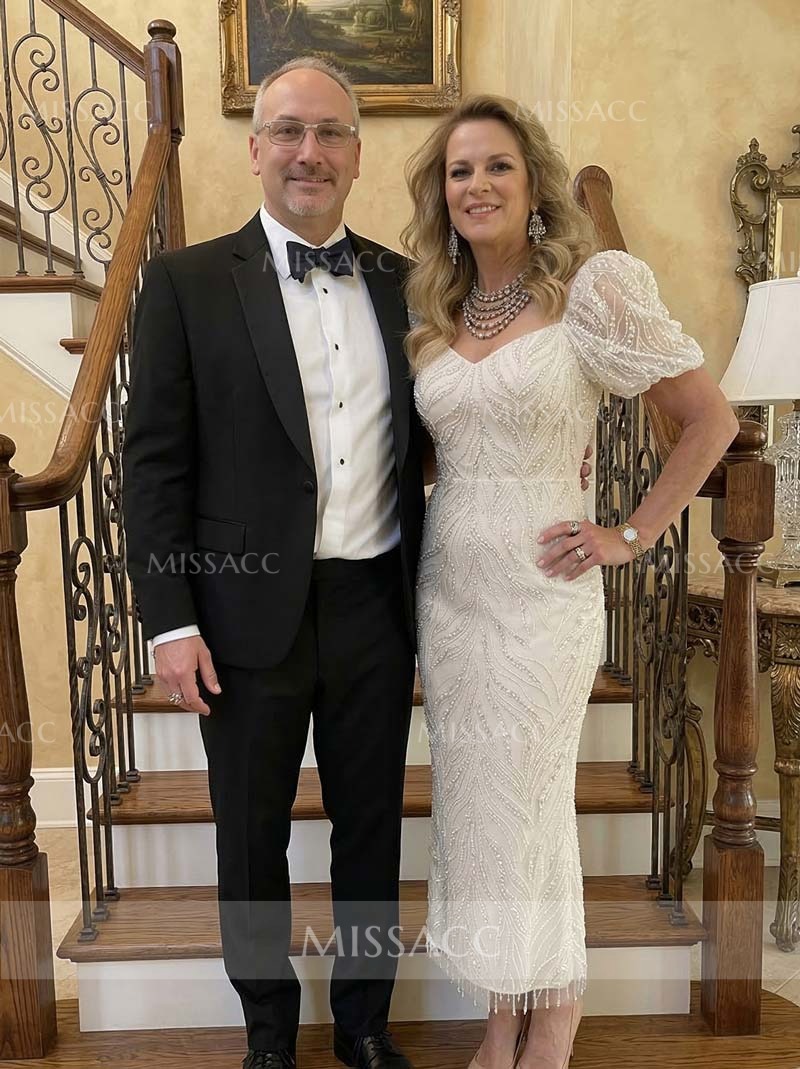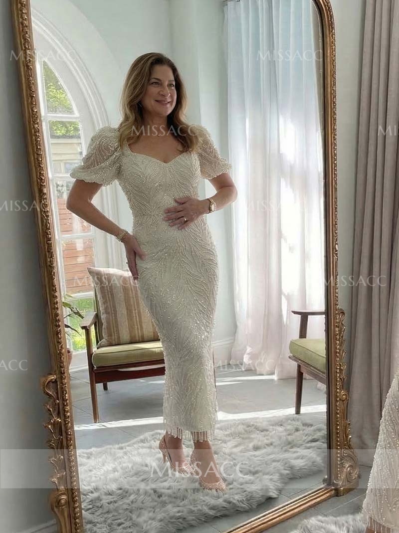I'm absolutely in love with this! The ankle length is super elegant, and the short sleeves give just the right amount of coverage. The beading looks way more expensive than it actually is. Highly recommend!